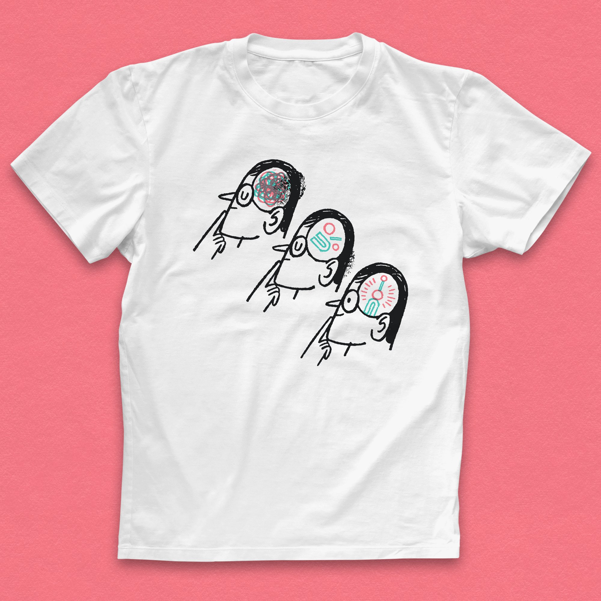 A cotton t-shirt printed with an illustration from the "Process" series - a visualization of the ideation process, or "How do mess become idea?"